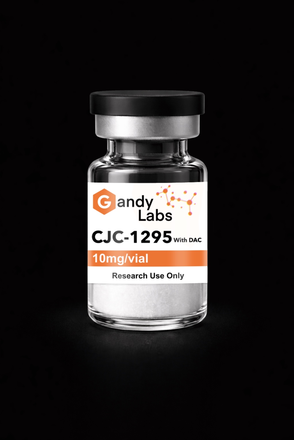 CJC-1295 (With DAC) is a lyophilized peptide for in vitro use. Studied for its interaction with growth hormone–releasing hormone (GHRH) receptors in laboratory research contexts.